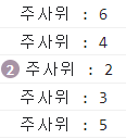 0.0000 ~ 0.9999..까지 Math.random() * 6; : 0보다 크거나 같고 6보다 작은 숫자 Math.random() * 6+1; : 1보다 크거나 같고 7보다 작은 숫자 Math.floor() : 소수점 1번째 자리부터 버림 => 정수로 만듬 console.log(dice); |