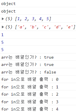 console.log("arr는 배열인가? : " + Array.isArray(arr));